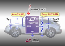 凌力爾特公司(Linear Technology Corporation)推出 LT3012 和 LT3013 的高溫型新版本,這是兩款具有高達 80V 輸入電壓能力的微功率 LDO。這些 H 級器件采用 TSSOP 封裝,在溫度高達 +140oC 時仍保持正常工作,并具有僅為 360mV 的低壓差,同時提供高達 200mA 的輸出電流。3.3V 至 80V 的寬 VIN 范圍和 1.24V 至高達 60V 的可調輸出使這兩種器件非常適用于汽車、48V 電信備份電源和工業控制應用。另外,這兩種器件具有非常低的靜態電流,工作時為 40uA,而停機時為 1uA,這使其成為由電池供電的存儲器“保持有效”系統的卓越選擇,因為這類系統需要較長的運行時間。LT3013 的電源良好(Power Good)標記功能是可編程的,用來指示輸出穩壓。