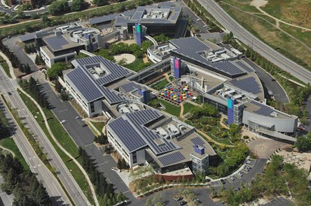 Googleplex里安裝的太陽能光伏板已經開始為Google總部提供凈潔的電力。根據Google提供的數據,在過去24小時里,這些太陽能設備已經為Googleplex提供了9468千瓦時的電力。更形像地說,9468千瓦時的電力可供20198個標準電吹風同時工作15分鐘,或者7890個電動咖啡壺工作1小時。