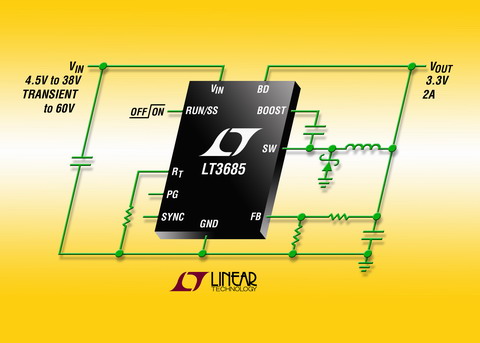凌力爾特公司(Linear Technology Corporation)推出輸入瞬態保護高達 60V 的 2A、38V 降壓型開關穩壓器 LT3685。LT3685 的 3.6V 至 38V 輸入工作電壓范圍和 60V 瞬態保護使其非常適用于汽車應用中的負載突降和冷車發動情況。其 3A 的內部開關能以低至 0.79V 的電壓提供高達 2A 的連續輸出電流。開關頻率從 200kHz 至 2.4MHz 是用戶可編程的,這優化了效率同時避開了關鍵噪聲敏感頻段。其高開關頻率允許使用小的外部電容器和電感器,加上 3mm x 3mm DFN-10 封裝(或耐熱增強型 MSOP-10E),使 LT3685 可組成占板面積非常緊湊的高熱效率解決方案。