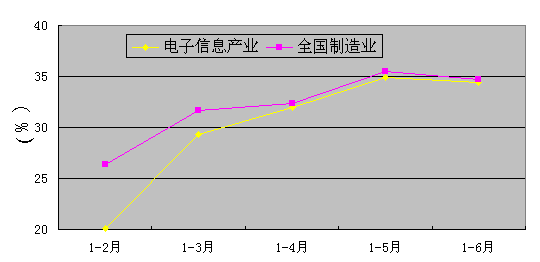 圖1 2007年1-6月電子信息產(chǎn)業(yè)與全國制造業(yè)累計(jì)完成投資增速對(duì)比情況(%)