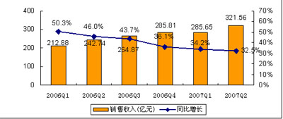 2006Q1——2007Q2中國集成電路產(chǎn)業(yè)銷售額規(guī)模及增長
