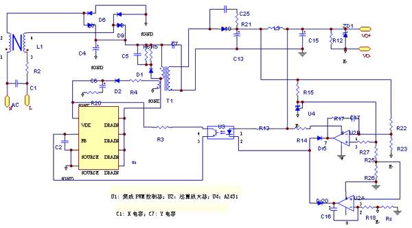 圖2、RCC充電器的典型線路
