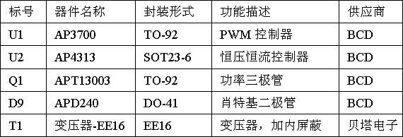 表1、AP3700充電器方案的核心器件列表