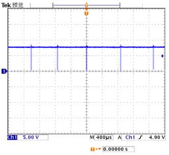 輕載和空載時,控制器從正常的PWM方式自動切換到“Skip cycle”模式,見圖4。在230V電網電壓范圍內空載輸入功率小于0.15W,滿足CEC標準規定的極限值0.3W,見圖5。