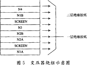 圖5為變壓器原邊繞組和副邊繞組。其中N1A,N1B是原邊繞組,分兩次繞;N2A,N2B是副邊繞組;N3,N4分別是輔助繞組;SCREEN為銅箔屏蔽。安規上一般要求散熱器接地,那么開關管漏極與散熱器之間的寄生電容就為共模噪聲提供了通路,可以在漏極和散熱器之間加一銅箔或鋁箔并接地以減小此寄生電容。采用磁屏蔽效果比較好的鐵氧體磁芯如PQ型或者P型來制作變壓器可以很大程度上減小變壓器漏磁從而減小原副方繞組漏感,有效抑制了EMI的傳播。