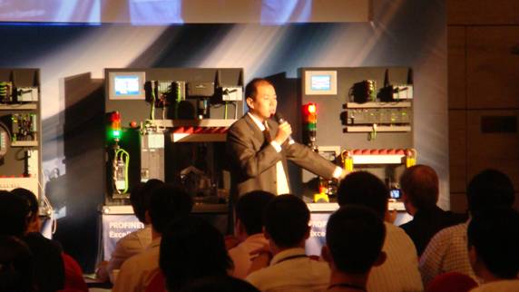 會議吸引了來自北京及周邊省市各個行業的客戶多達200余人,會場內座無虛席,場面熱烈。西門子(中國)有限公司自動化與驅動集團自動化系統部總經理斐德思先生為活動揭幕并致開幕詞。隨著幕布拉開,從德國進口的迷你工廠模型設備展示在來賓面前。之后,斐德思先生為大會作了精彩的開幕詞《西門子——創新成就未來》,使客戶們對西門子產品的創新性有了嶄新的理解。機械工業儀器儀表綜合技術經濟研究所副所長歐陽勁松先生在大會上作了題為《PROFINET在中國的發展趨勢》的演講。來自清華大學自控系的教授陽憲惠作了題為《自動化網絡通訊的發展前景和方向》的演講,系統地闡述了工業通訊網絡的基礎理論和應用前景。