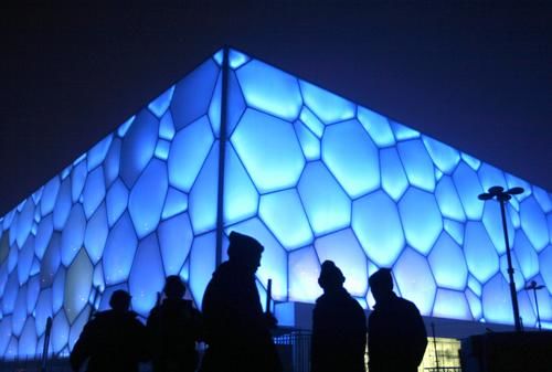 2008年1月18日,國家游泳館——“水立方”內部亮出藍色燈光,使得國家游泳館猶如一個“水晶立方”。據了解,國家游泳館燈光調試完畢后,將會照射出紅、黃、綠、藍等多種顏色。