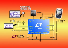 凌力爾特 (Linear Technology Corporation) 推出自主式高效率電源管理器、理想二極管控制器和電池充電器 LTC4098,該器件用于由 USB 供電的便攜式設備,如媒體播放器、數碼相機、PDA、個人導航器和智能電話。LTC4098 的開關拓撲具有電源通路 (PowerPathTM) 控制,可無縫地管理交流適配器或 USB 端口和設備的鋰離子/聚合物電池之間的電源流動,同時優先向系統負載供電。就汽車、Firewire 或其它高壓應用而言,LTC4098 對凌力爾特公司高達 38V 工作輸入 (60V 瞬態) 的伴隨開關穩壓器提供電池跟蹤 (Bat-TrackTM) 控制,從而最大限度地提高了電池充電器的效率、最大限度地減少了熱量,并可以在 USB 和較高壓電源之間無縫轉換。