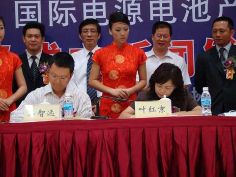 圖為深圳發展銀行廣州分行花園支行行長馬智遠與廣東省電源行業協會秘書長葉紅京簽約