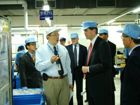 2008年11月3日,伊頓公司董事長兼首席執行官柯仁杰(Alexander M. Cutler) 先生和流體動力集團首席執行官Craig Arnold來到深圳,參觀了位于深圳寶安的山特電子(深圳)有限公司,并拜訪了一些重要客戶。柯仁杰先生一行詳細參觀并詢問了山特公司的生產制造、研發、銷售、市場等各個職能組織機構的現狀,山特公司總經理蔡嘉明女士全程陪同并作了現場講解。參觀訪問團對山特目前所處的市場地位和產品系列表示滿意,對中國市場的發展充滿期待。