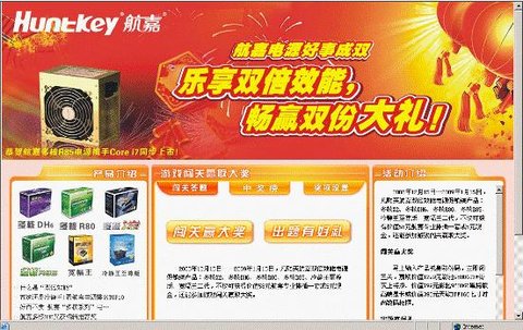 2008年12月15日——2009年1月15日,凡購買航嘉雙倍效能電源促銷裝產品:多核X2、多核DH6、多核R80、多核R85、冷靜王至尊版、寬幅王二代,就可享受雙倍效能,并有機會獲得雙份大禮!