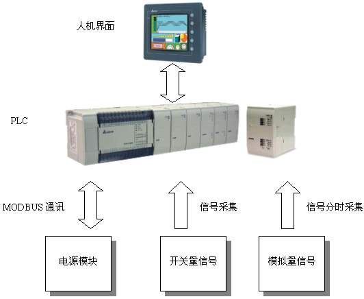 電源監控是鐵路信號的重要的監控系統。在此之前信號的電源監控系統基本上是采用單片機作為信號采集系統的核心。單片機監控系統一方面存在采集速度慢、界面不友好、操作不方便等技術局限,另一方面由于其中的電源模塊部分的監控相對獨立,對電源系統帶來了諸多不便,比如維護困難、界面顯示繁瑣等。基于以上原因本項目配套開發了基于臺達PLC作為信號采集核心、臺達HMI觸摸屏作為操作和監視界面的電源監控系統。監控子系統與電源模塊通過工業總線網絡互連實現整合的經濟實用、技術先進的鐵路信號的電源監控系統。