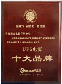 合肥陽光喜獲UPS電源“十大品牌”榮譽稱號
