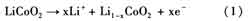 鋰離子電池的正極材料為LiCoO2,負極材料為石墨晶體,這兩種材料都具有層狀結構,允許鋰離子進出。鋰離子電池在充電時發生如下主要化學反應: