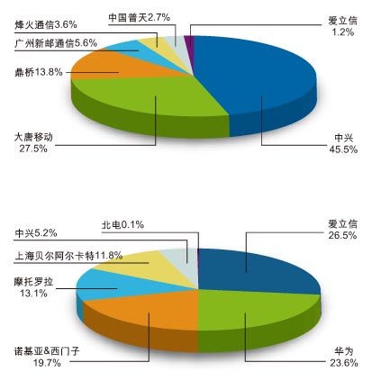 在產(chǎn)量方面,國(guó)內(nèi)廠商正在改變?nèi)蛞苿?dòng)設(shè)備產(chǎn)業(yè)的格局。2007年,華為GSM在全球銷(xiāo)售70多萬(wàn)載頻,比2006年的35萬(wàn)翻了一番。華為在GSM市場(chǎng)的全球市場(chǎng)份額因此已達(dá)21%。另一家領(lǐng)先的設(shè)備供應(yīng)商中興,2007年在全球GSM市場(chǎng)出貨34萬(wàn)載頻,這意味著220%的年增長(zhǎng)率,相比2006年的10.5萬(wàn)載頻增長(zhǎng)驚人。iSuppli預(yù)測(cè)2008年中國(guó)基站總產(chǎn)量將為23萬(wàn)臺(tái)。
