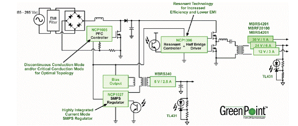為了提高能效,安森美半導體提供了幾種典型參考設計,可以分別滿足個人電腦電源能效趨勢以及提升液晶電視能效等方面的要求。