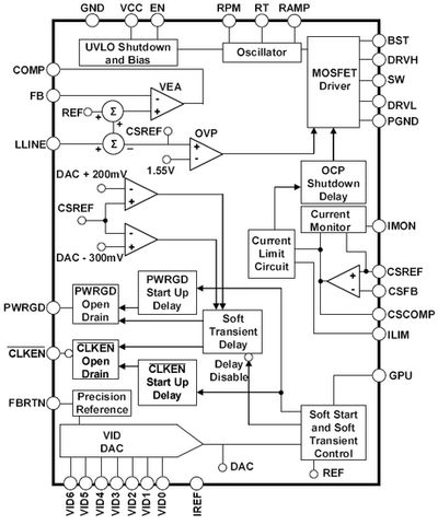 ADP3211A的輸入電壓范圍為3.3 V至22 V,完全符合英特爾IMVP-6+TM CPU和GMCH芯片組的電源管理規范。該器件采用多模控制架構,對輸入電壓變化和負載變化的反應非常迅速,具有可編程的開關頻率以提高能效。在輕載條件下,這款器件更能夠自動切換至非連續導電模式(DCM),從而提供極高的輕載電源轉換能效。