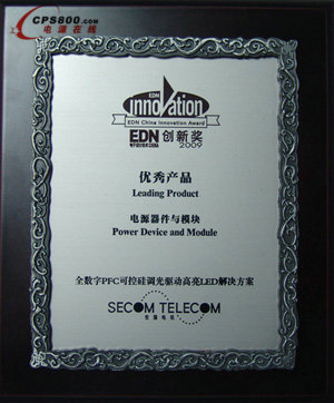 11月18日,深圳海景奧斯廷酒店,EDN China正式公布2009年度技術創新獎評選結果。本屆共有來自69家公司的100個產品獲創新獎提名,世強電訊自主推出的“全數字PFC可控硅調光驅動高亮LED解決方案”因采用單芯片控制,實現調光和PFC功能,具有快速有效的過電流保護,隔離驅動,良好的EMI特性以及性價比高等優勢而獲創新大獎,這也是世強電訊第三次獲此獎項。