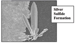 圖1 硫滲過電鍍層屏蔽層與銀接觸形成硫化銀