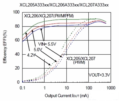 XCL205/206/207擁有DC/DC的特性,LDO的用法(圖1)。