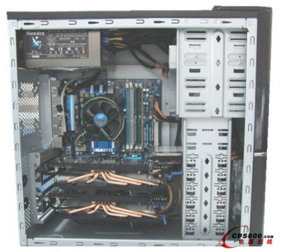 從上圖可以看到,背部走線后H403的內(nèi)部非常整潔,對(duì)散熱非常有利。