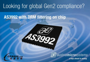 奧地利微電子AS3992產品包括了一系列先進的功能,如可編程DRM濾波器、預失真功能和-86dBm的超高接收器靈敏度。這意味著采用AS3992的單一設計系統率先實現可交付給全球任何市場。