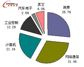 在行業(yè)整體下滑的背景下,工業(yè)控制類電源管理芯片市場由于沒有明顯的市場推動因素而出現(xiàn)21.4%的大幅下降。消費電子類集成電路市場的下降幅度雖然也出現(xiàn)了超過20%的下降幅度,但是隨著中國家電下鄉(xiāng)的拉動,市場的降幅可能會逐漸縮小。