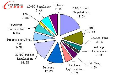 圖4 2009年上半年中電源管理芯片路市場產(chǎn)品結(jié)構(gòu)(數(shù)據(jù)來源:CSIA)