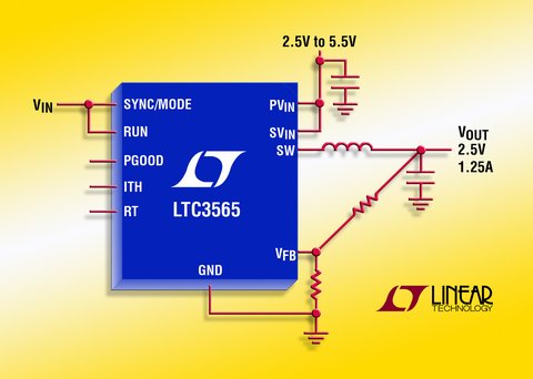 2009年2月3日,凌力爾特公司(Linear Technology Corporation)推出高效率同步降壓型穩壓器LTC3565,該器件采用3mmx3mm DFN(或MSOP-10E)封裝,可提供高達1.25A的連續輸出電流。LTC3565采用恒定頻率(高達4MHz)和電流模式架構,在2.5V至5.5V的輸入電壓范圍內工作,非常適用于單節鋰離子或多節堿性/鎳鎘/鎳氫金屬電池應用。它能產生低至0.6V的輸出電壓,因此能夠為最新一代低壓DSP和微控制器供電。一個獨立的RUN引腳可實現簡單的接通和停機。其開關頻率從400kHz至4MHz是用戶可編程的,從而使設計師能夠優化效率,同時避開關鍵的噪聲敏感頻段。其3mmx3mm DFN-10(或MSOP-10)封裝和高開關頻率可保持使用小的外部電感器和電容器,從而提供一個占板面積非常緊湊、高熱效率的解決方案。