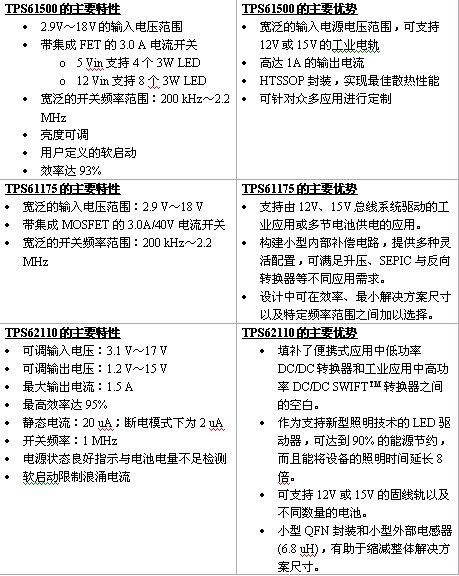 2009年2月3日,德州儀器(TI)宣布推出高功率DC/DC升壓LED驅(qū)動器(TPS61500)高壓DC/DC升壓轉(zhuǎn)換器(TPS61175),及降壓DC/DC轉(zhuǎn)換器 (TPS62110)三款新型電源管理芯片。這三款產(chǎn)品可支持高達(dá)18V 的輸入電壓并具有較小的電壓基準(zhǔn),有助于改進(jìn)LED電路設(shè)計(jì)。此外,這些低能耗產(chǎn)品具備多種功能,可廣泛應(yīng)用于指示牌、環(huán)境照明、辦公照明、普通照明、醫(yī)療及傳感器等各種LED應(yīng)用。如欲了解產(chǎn)品詳情,敬請?jiān)L問: