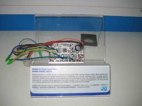 這次展出的電動車以及低功耗觸摸控制方案就是基于STM8平臺的產品系列--STM8S。STM8S是針對工業溫度范圍開發的8位通用MCU,整合了新一代內核的高速度、處理性能和代碼效率!癝TM8S系列采用工業標準,抗干擾能力很強,性價比高,主要應用于家電、汽車等領域!眳墙鞅硎荆骸敖衲晗掳肽闟T還將推出STM8L,針對便攜式、電池供電、對功耗敏感的應用。”