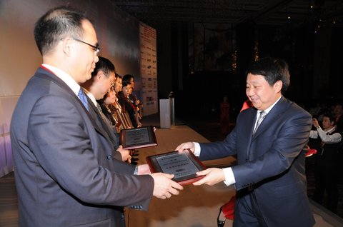電子信息產業發展研究院副院長兼賽迪顧問總裁羅文為科華公司副總經理林清民頒獎
