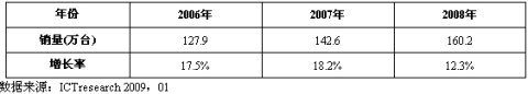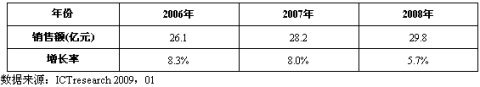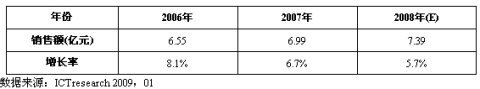 表8 中國UPS市場電信行業2008-2012年市場銷售額預測
