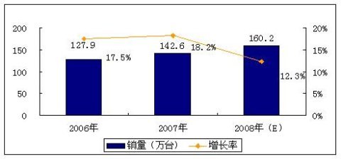 2007年中國UPS市場共計銷售142.6萬臺,同比增長率為11.5%,銷售額為28.2億元人民幣,同比增長8.0%。可以看出,2007年的中國UPS市場,銷量依然持續著兩位數的穩定增長,而銷售額的增長速度由于各UPS廠商之間的激烈競爭略低于銷量的增長速度。