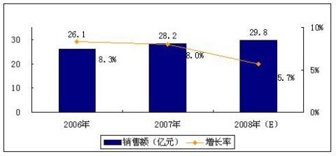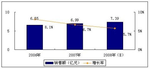 圖6 2006-2008年中國UPS金融行業市場銷售額情況