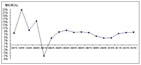 圖4 中國UPS市場1997-2013年市場銷售額增長率預測