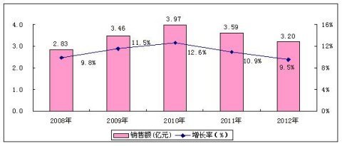 圖11 2008-2012年中國UPS市場電信行業銷售額情況