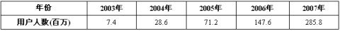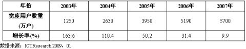 表11 2003~2007年中國寬度用戶數量及其增長速度