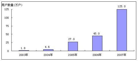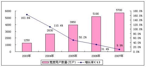 圖14 2003~2007年中國寬度用戶數量及其增長速度