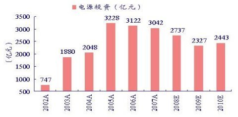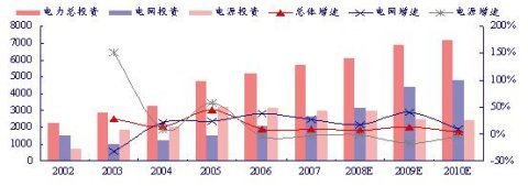 預計2009年電網基建投資規模為4400億元,比上年增長40.58%,其中國家電網投資額為3600億元,同比增長36.36%;南方電網投資額為800億元,同比增長63.27%。2009年,電源投資規模將繼續下滑,預計投資額為2500億元,較去年下滑16.67%,但是,由于電網投資增長,2009年,電力投資總額將達到6900億元,同比增長12.56%。