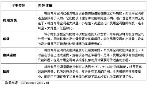 表10 機房專用空調與舒適性空調的差異比對