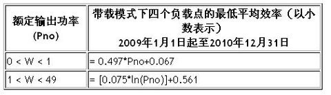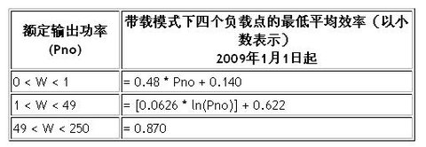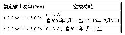 表2.1:帶載模式能效標(biāo)準(zhǔn)(不包括低壓外部電源)