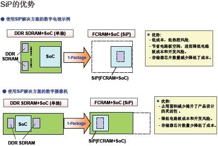目前,市場(chǎng)對(duì)消費(fèi)類數(shù)字產(chǎn)品的性能、速度和開發(fā)成本的要求越來越高。為滿足這些需求,就會(huì)更多地使用SiP,要求它同時(shí)整合帶有SoC的存儲(chǔ)器芯片。使用SiP可以減少元器件數(shù)量并節(jié)省電路板空間,進(jìn)而能夠降低系統(tǒng)成本。使用SiP還能簡(jiǎn)化高速存儲(chǔ)器開發(fā)或采取降噪措施等設(shè)計(jì)。