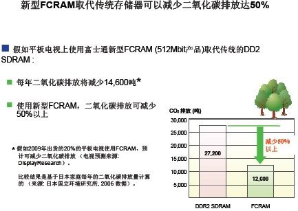 而且,即使在125℃的環(huán)境下運(yùn)行,這些新型FCRAM產(chǎn)品也可以提供傳統(tǒng)DDR SDRAM存儲(chǔ)器兩倍的數(shù)據(jù)傳輸率,同時(shí)還能保持低功耗。事實(shí)上,與傳統(tǒng)的DDR2 SDRAM存儲(chǔ)器相比,新型512 Mb FCRAM能降低功耗達(dá)50%。所以,這些新型FCRAM可以減少消費(fèi)類電子產(chǎn)品的存儲(chǔ)器的二氧化碳排放達(dá)50%(詳細(xì)信息請(qǐng)參照下圖)。