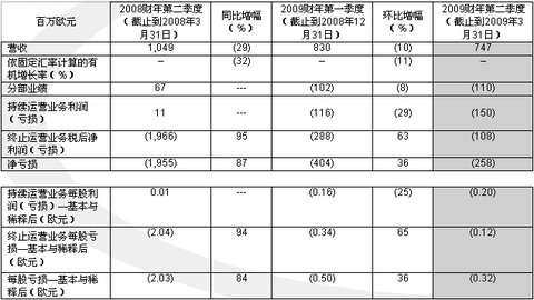英飛凌2009財年第二季度的終止運營業(yè)務(wù)凈虧損為1.08億歐元,合每股虧損(基本與稀釋后)0.12歐元。2009年1月23日,奇夢達(dá)股份公司及其全資子公司奇夢達(dá)德累斯頓向慕尼黑地方法院提交了破產(chǎn)申請。在此基礎(chǔ)上,英飛凌于第二季度完成了對奇夢達(dá)的分立,并承擔(dān)主要與奇夢達(dá)貨幣換算效應(yīng)相關(guān)的1億歐元累計虧損。此類累計虧損的確認(rèn)將不會對英飛凌的股東權(quán)益產(chǎn)生任何影響。