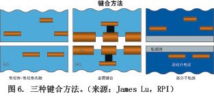 由于特征尺寸的限制,圖6所示全部鍵合技術都需要特別光滑、平整和潔凈的表面。盡管所有這些技術看起來都可行,但有一種趨勢是轉向使用金屬-金屬鍵合技術,因為這種技術可以同時實現機械和電學的接觸界面。銅-銅鍵合直接銅鍵合工藝需要到在350-400℃溫度下施加壓力超過30分鐘,接著在350-400℃下的氮氣氣氛退火30-60分鐘。這一工藝需要高度拋光的銅表面并保持很高的潔凈度。像EVGroup(奧地利St.Florian/Inn)和SUSSMicroTec(佛蒙特州,Waterbury)等廠商提供的商業化工具,需要在單個對準工具上裝有多個鍵合頭,才能得到可接受的產能。一種像Ziptronix(北卡羅來納州,Morrisville)報道的稱作直接鍵合互連(DBI)的工藝,據說可以大大提高這一產能。這種技術使用金屬對TSV進行封帽,之后采用氧化物、金屬同步CMP進行平坦化,經過專利保護的表面處理技術,可使用標準的鍵合/對準機在大氣環境下1-2分鐘內實現芯片或者晶圓的鍵合。在350℃溫度下施加壓力,在低CoO鍵合操作下可以獲得了單一的金屬界面。