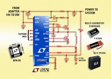- 1 至 4節鋰離子/聚合物電池:4.1V、8.2V、12.3V、16.4V (LTC4012-1)