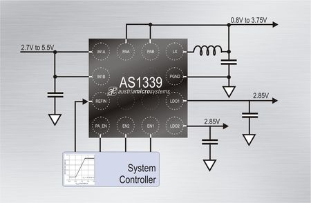 AS1339的功效高達97%,具有高開關頻率和降噪特性,并針對多頻段WCDMA/NCDMA和類似無線應用而優化
