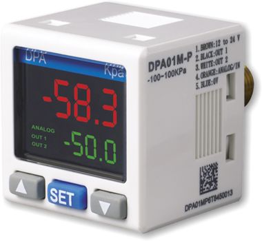 臺達DPA系列新一代微型壓力感測器是集檢測,顯示,控制于一體的產品。不但可將氣體壓力值通過高亮LCD以數值直觀顯示,而且可將壓力值以線性模擬量的方式傳送到上位機。用戶更可通過參數定義兩路開關量的動作來達到控制的目的。小巧的外型,內含豐富的功能: