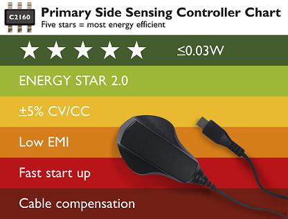 C2160系列控制芯片的問世,讓制造廠商在生產8W以下的消費性電子產品時,在不需要增加額外零件且不需犧牲任何效能的狀況下,就能在正常模式中將無負載電源消耗降低至30mW以下。這一系列的控制芯片同時也擁有0.3秒快速起動功能,這樣一來能降低制造廠商的測試成本,并且讓行動電話在插上電源的同時,立刻開始進行充電的動作。